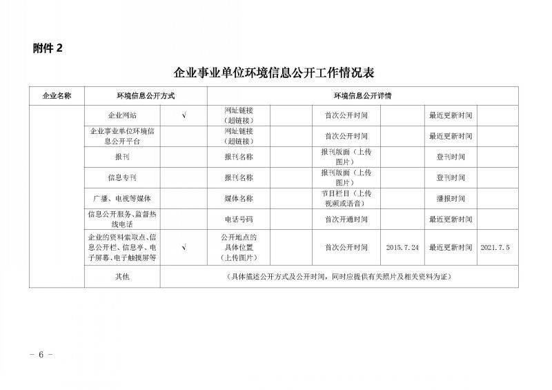 2021年第二季度环境信息公开表