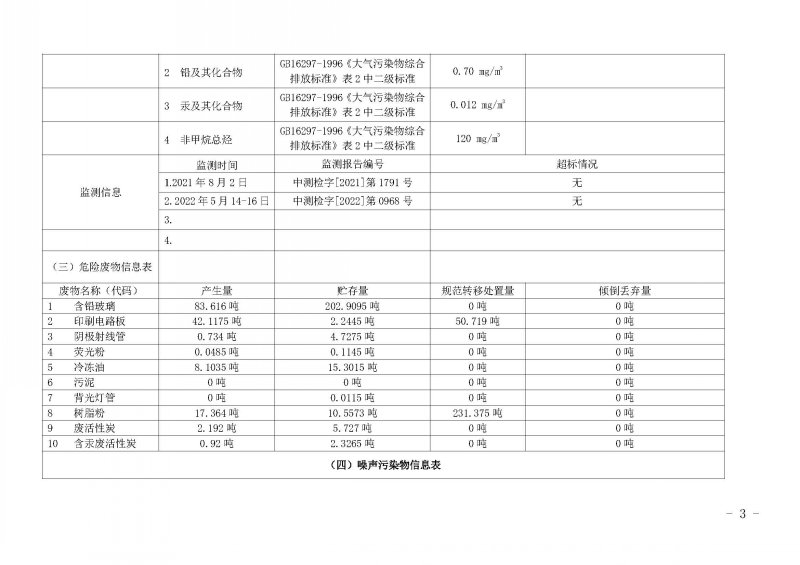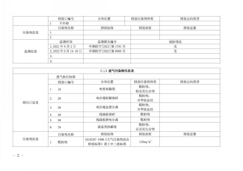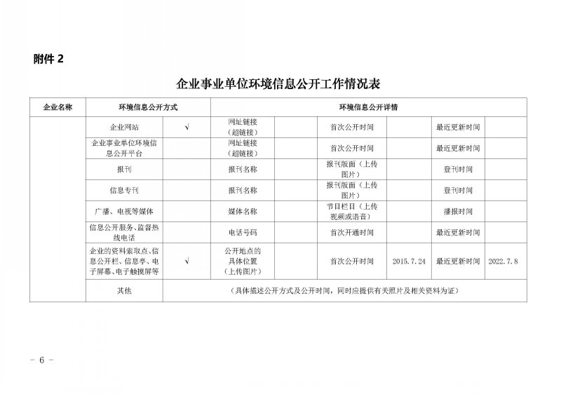 2022年第二季度环境信息公开表